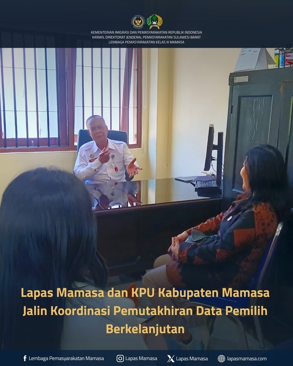 Lapas Mamasa dan KPU Kabupaten Mamasa Jalin Koordinasi Pemutakhiran Data Pemilih Mamasa, 24 September 2025 – Lapas Kelas III Mamasa melaksanakan koordinasi dengan Komisi Pemilihan Umum (KPU) Kabupaten Mamasa terkait Pemutakhiran Data Pemilih Berkelanjutan (PDPB) Triwulan III Tahun 2025. Kegiatan ini berlangsung di ruang Admisi & Orientasi (A&O) Lapas Mamasa pada pukul 10.30 WITA […]