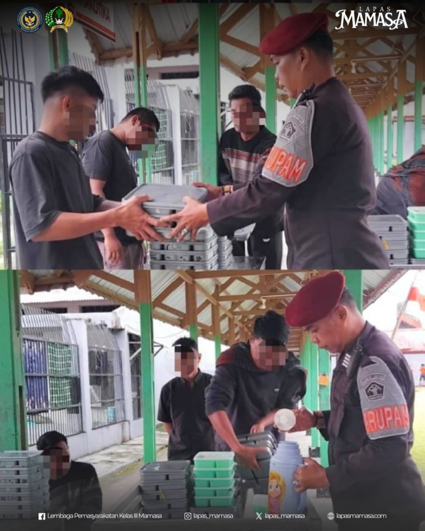 Pada Selasa, 19 Agustus 2025, Lapas Kelas III Mamasa melaksanakan kegiatan pengawasan pembagian ompreng di depan blok hunian warga binaan. Kegiatan ini merupakan bagian dari pelayanan dasar sekaligus pembinaan kedisiplinan yang senantiasa dijaga oleh petugas pengamanan. Suasana pembagian berlangsung dengan tertib, mencerminkan keteraturan yang menjadi komitmen bersama antara petugas dan warga binaan.