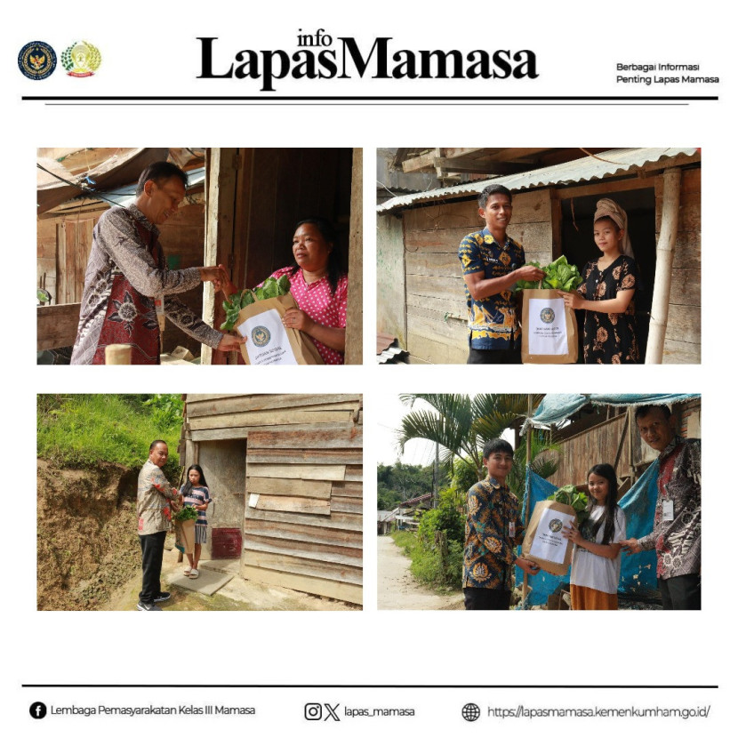 Mamasa, 1 Maret 2024 – Dalam rangka mendukung program Asta Cita dan kesejahteraan masyarakat, Lembaga Pemasyarakatan (Lapas) Kelas III Mamasa kembali menyalurkan Bantuan Sosial (Bansos) kepada warga sekitar yang kurang mampu, Jumat (28/2/2025). Kegiatan ini merupakan bagian dari program akselerasi Menteri Imigrasi dan Pemasyarakatan yang bertujuan untuk memberikan bantuan sosial kepada keluarga Warga Binaan dan masyarakat sekitar Unit Pelaksana Teknis (UPT) Pemasyarakatan.