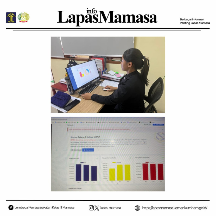 Mamasa, 25 Januari 2025 – Seluruh pegawai Lembaga Pemasyarakatan (Lapas) Kelas III Mamasa melaksanakan pelaporan harta kekayaan melalui aplikasi SERAYA sebagai tindak lanjut dari Nota Dinas nomor WP.33.PAS6.UM.01.01-17 tentang Pelaksanaan Pelaporan Harta Kekayaan. Kegiatan ini bertujuan untuk memastikan tertib administrasi kepegawaian di lingkungan Imigrasi dan Pemasyarakatan.