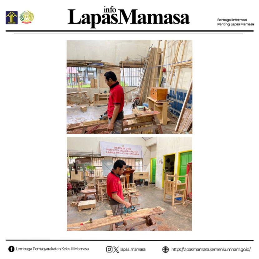 Mamasa, 16 Januari 2025 – Lapas Kelas III Mamasa terus berkomitmen meningkatkan keterampilan warga binaan melalui berbagai program pembinaan kemandirian. Salah satu kegiatan yang mendapat perhatian khusus adalah pembinaan keterampilan pertukangan kayu, yang saat ini tengah diawasi secara rutin oleh petugas lapas untuk memastikan pelaksanaannya berjalan efektif dan sesuai tujuan.