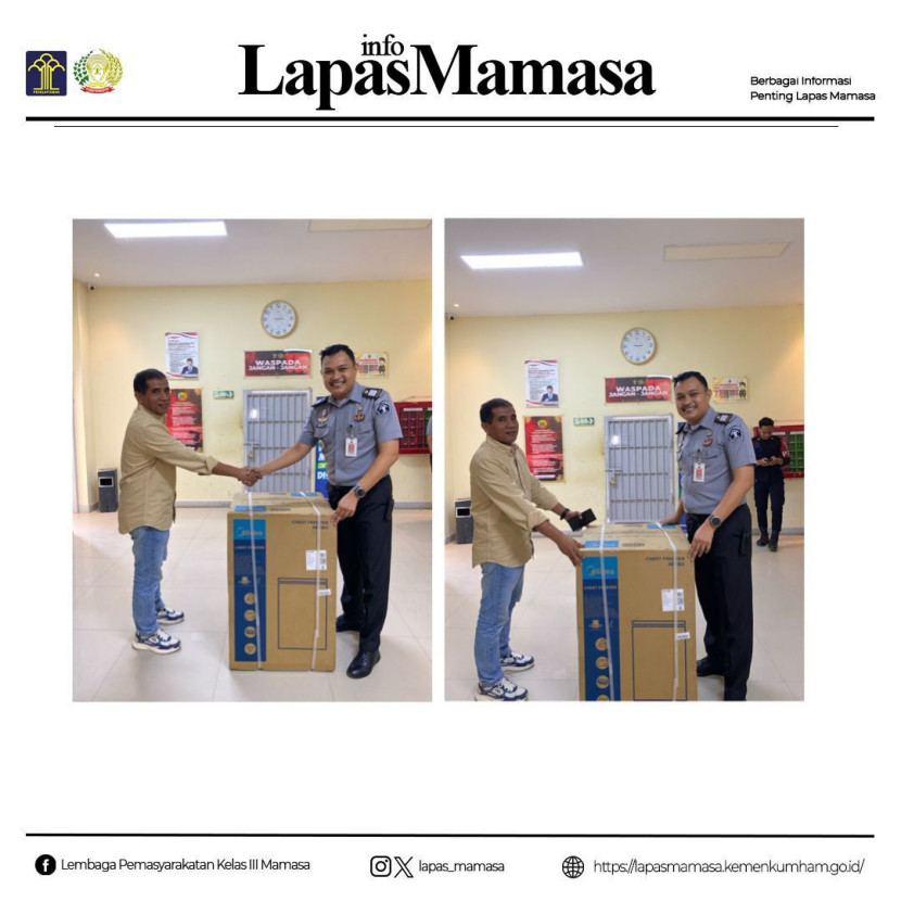 Lapas Mamasa Terima Bantuan Freezer dari Penyedia Bahan Makanan untuk Jaga Kualitas Layanan