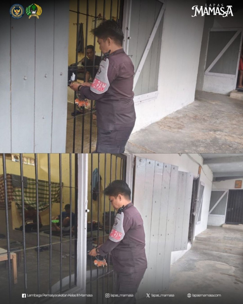 Setiap pukul 17.30 WITA, suasana di Lembaga Pemasyarakatan Kelas III Mamasa mulai tenang dan tertib seiring dengan dilaksanakannya kegiatan penguncian blok oleh petugas jaga. Kegiatan ini merupakan bagian dari prosedur keamanan rutin yang dilaksanakan untuk memastikan seluruh warga binaan berada di dalam kamar hunian masing-masing menjelang malam. Penguncian blok bukan hanya tentang aspek pengamanan, tetapi juga menjadi simbol kedisiplinan serta komitmen petugas dalam menjaga ketertiban dan stabilitas lingkungan lapas.