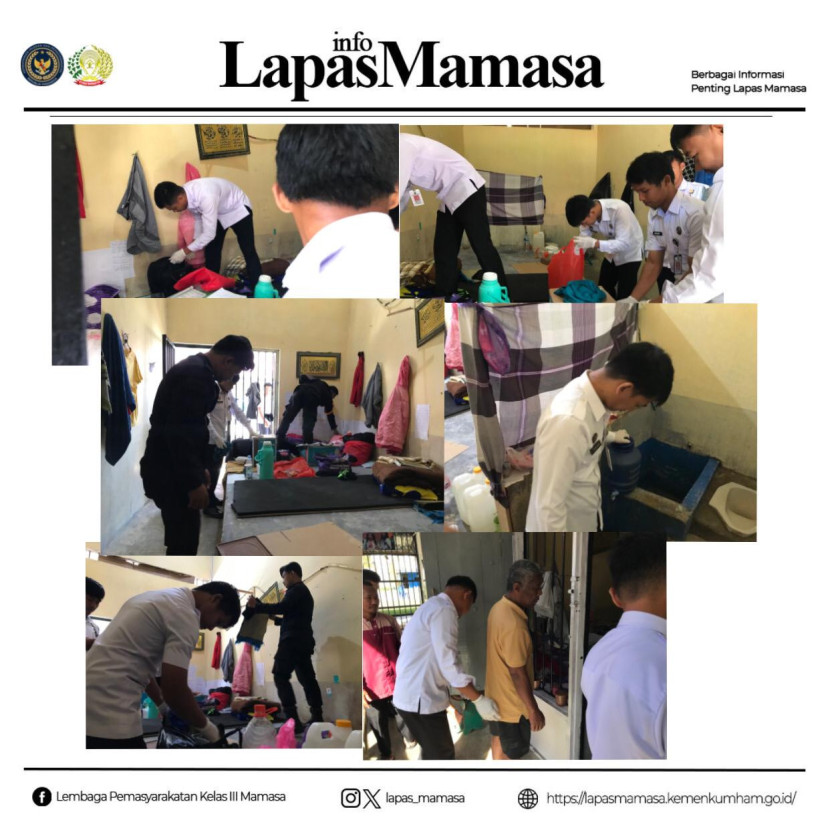 Dalam pelaksanaan penggeledahan, petugas Lapas Mamasa memeriksa setiap sudut kamar hunian, termasuk tempat tidur, lemari, dan barang-barang pribadi warga binaan. Fokus utama pemeriksaan adalah penyitaan benda-benda terlarang seperti senjata tajam, alat komunikasi ilegal, obat-obatan terlarang, serta barang lain yang berpotensi mengganggu keamanan.