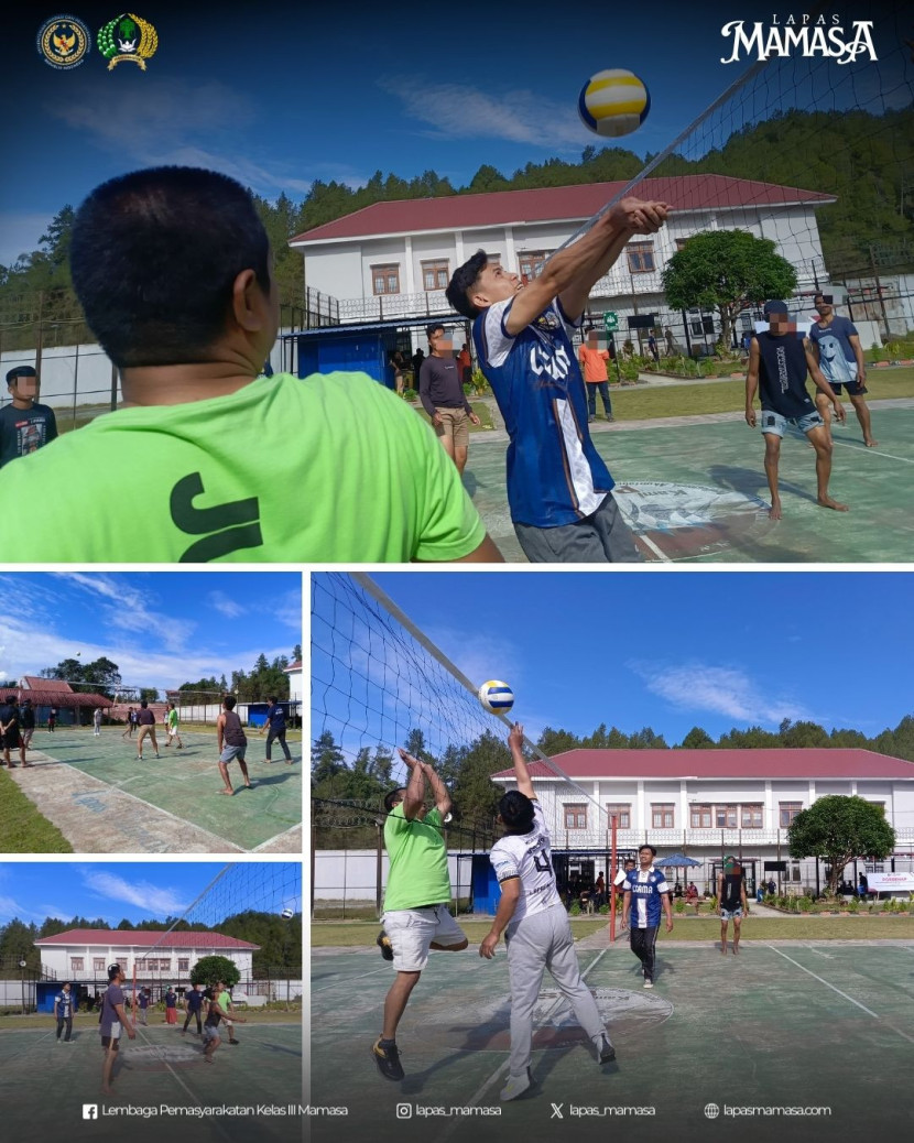 Hari kedua pelaksanaan Pekan Olahraga dan Seni Narapidana (PORSENAP) di Lapas Kelas III Mamasa berlangsung dengan penuh semangat dan antusiasme. Rabu, 6 Juli 2025, lapangan olahraga lapas menjadi saksi kemeriahan pertandingan bola voli dalam rangka memperingati Hari Ulang Tahun ke-80 Kemerdekaan Republik Indonesia. Lomba voli ini menjadi salah satu momen istimewa dalam rangkaian kegiatan PORSENAP, yang tidak hanya menyuguhkan pertandingan seru, namun juga memperlihatkan nilai kebersamaan antara petugas dan warga binaan.